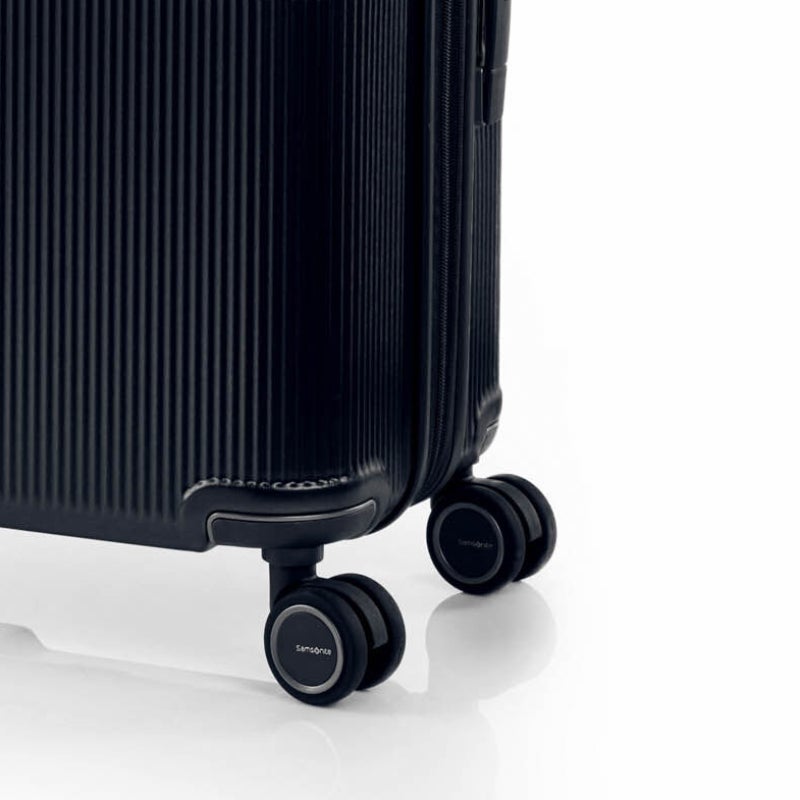 The new sophisticated luggage design with fine vertical grooves and long aluminium logo bar at the middle to present this complete luxurious piece. Minter is equipped strong features for frequent travellers, Aero-TracTMII Suspension Wheel System with shock-absorbing suspension system and build-in ball bearings mechanism, the wheel provides effortless and silky-smooth manoeuvrability, reduce noise and vibration.